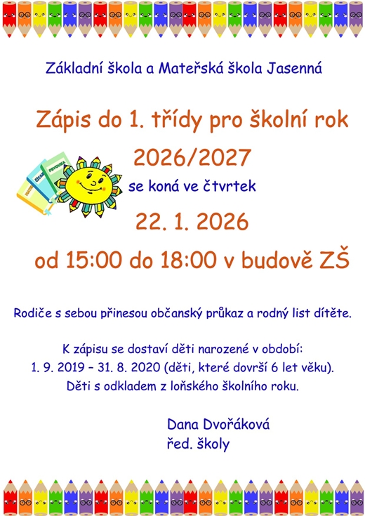 ZÁPIS DO 1. TŘÍDY PRO ŠKOLNÍ ROK 2026/2027